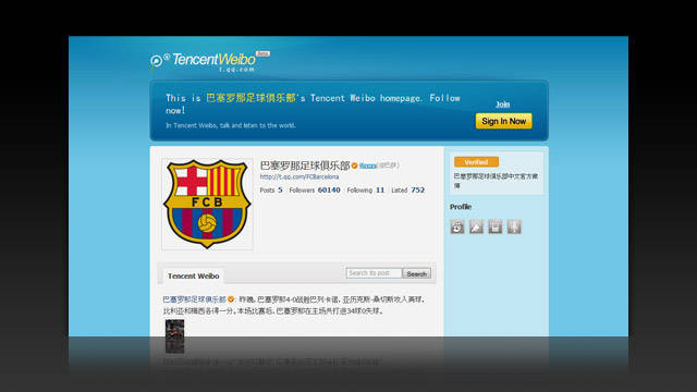 The launch of the new FC Barcelona page on Tencent Weibo (http://t.qq.com/fcbarcelona ) has been a total success. The day after the signing of the collaboration agreement between the two entities, the Barça account was activated in what is known as the 'Chinese Twitter' and in the first twelve hours already exceeded the figure of 50,000 followers. The agreement, which opens the door to the presence of FC Barcelona on the Chinese social networks, to develop a strategic alliance with the company Tencent, which has more than 300 million subscribers, is the first step to consolidate Barca's popularity in the most populous country in the world.